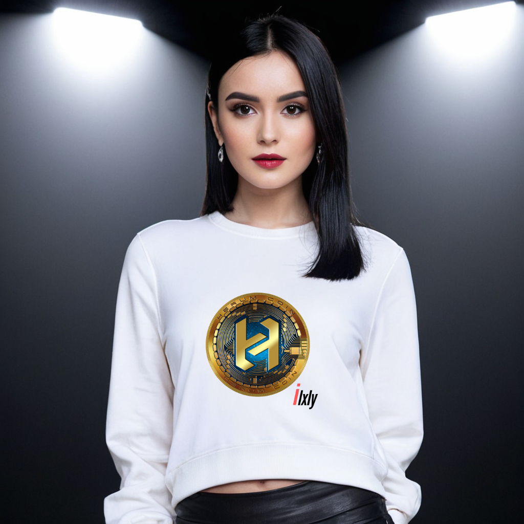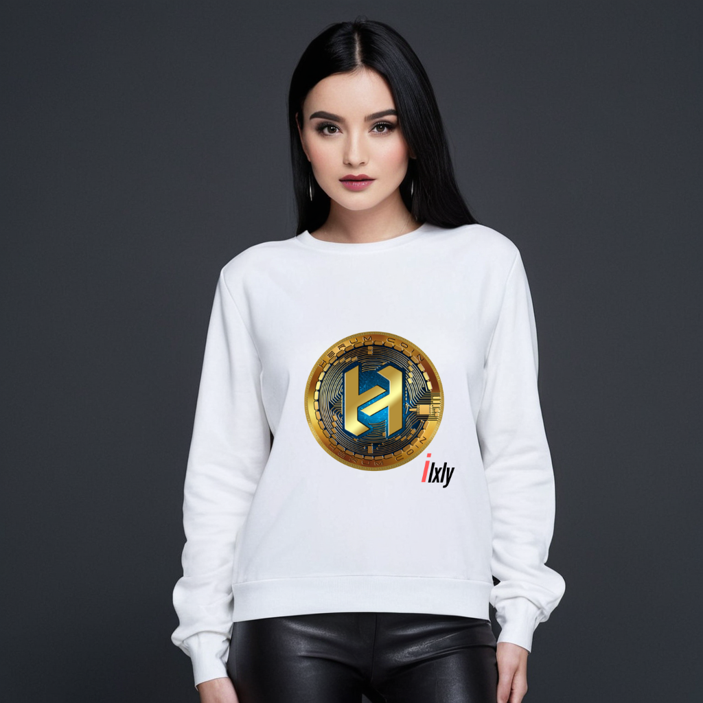 Soft and stylish white sweatshirt for girls, featuring ILXLY’s premium quality and Herum Coin branding. Cozy, versatile, and perfect for everyday wear.