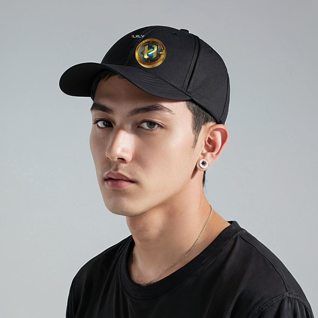 Classic black unisex baseball cap featuring ILXLY’s premium quality and Herum Coin branding. Stylish, adjustable, and perfect for everyday wear.